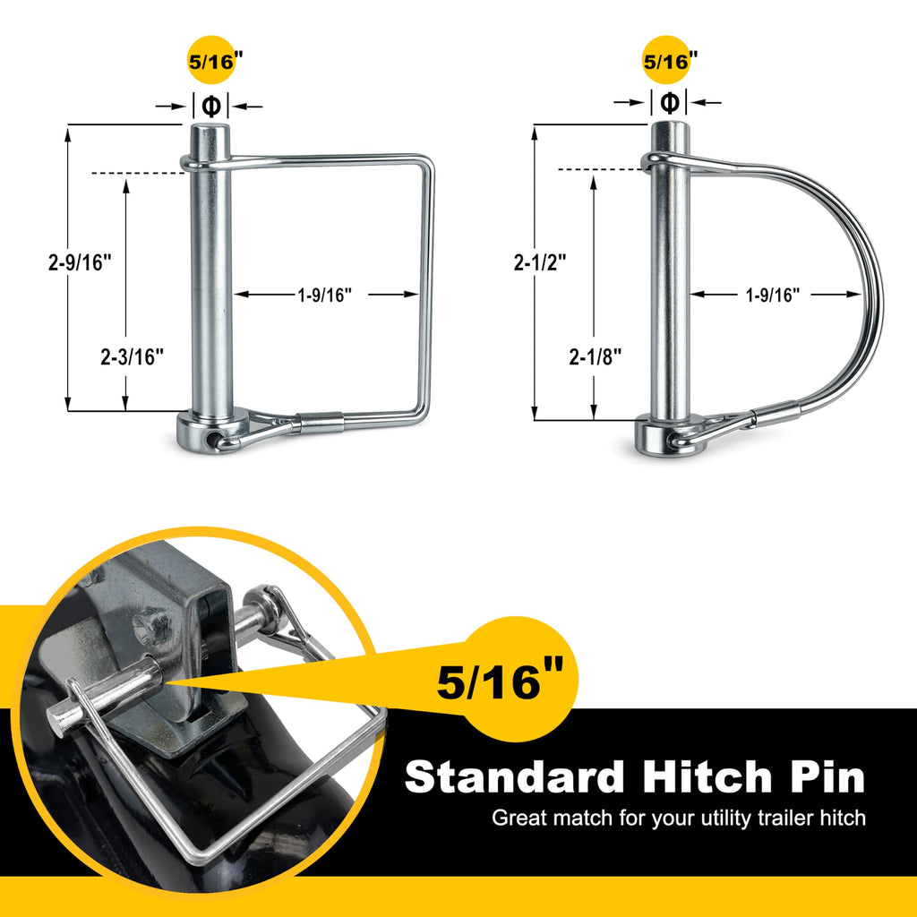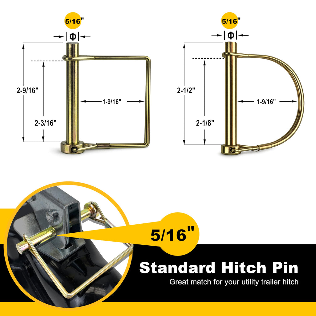 12-Piece Multi-Size Assortment: This comprehensive kit includes the most common sizes for towing and agriculture: (4) 1/4" x 2-3/4" Square, (2) 5/16" x 2-1/2" Square, (4) 1/4" x 2-3/4" Arch, and (2) 5/16" x 2-1/2" Arch pins. One kit covers all your trailers, mowers, and PTO shafts.