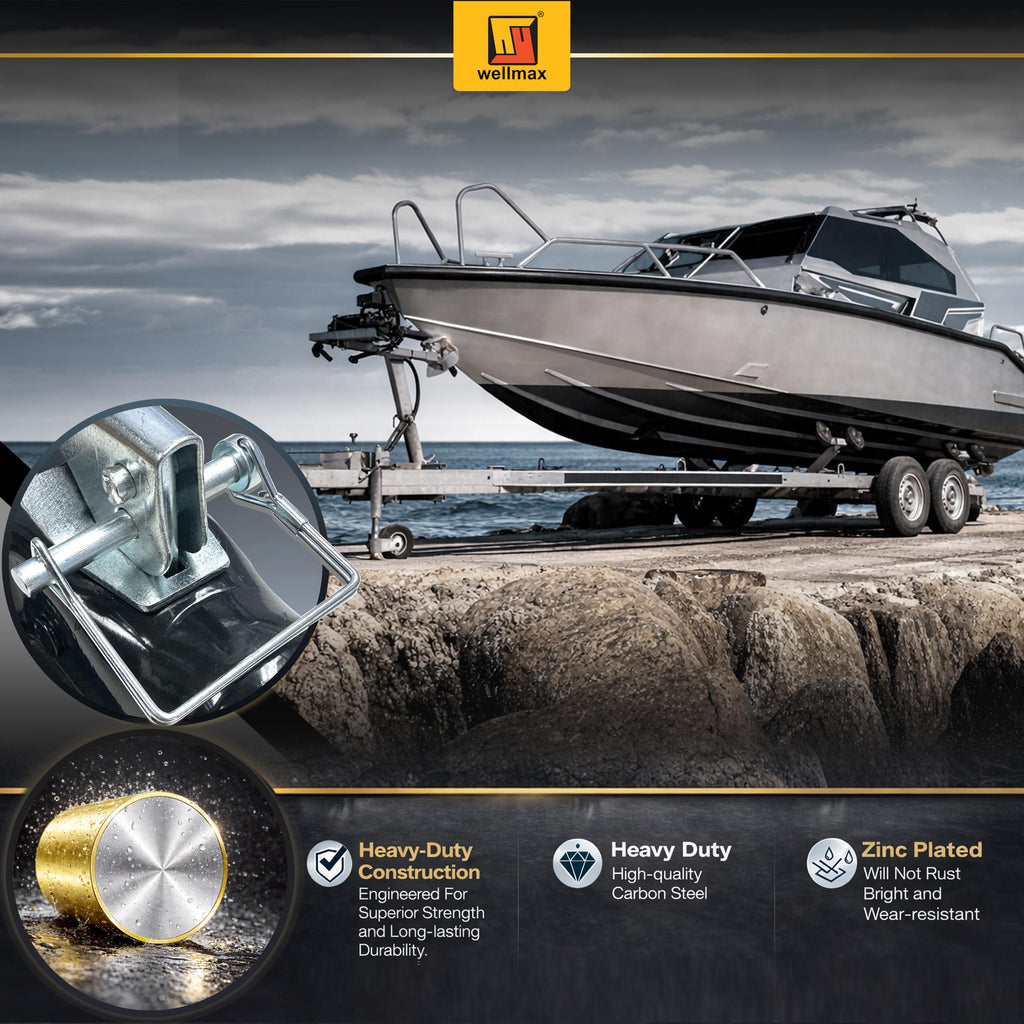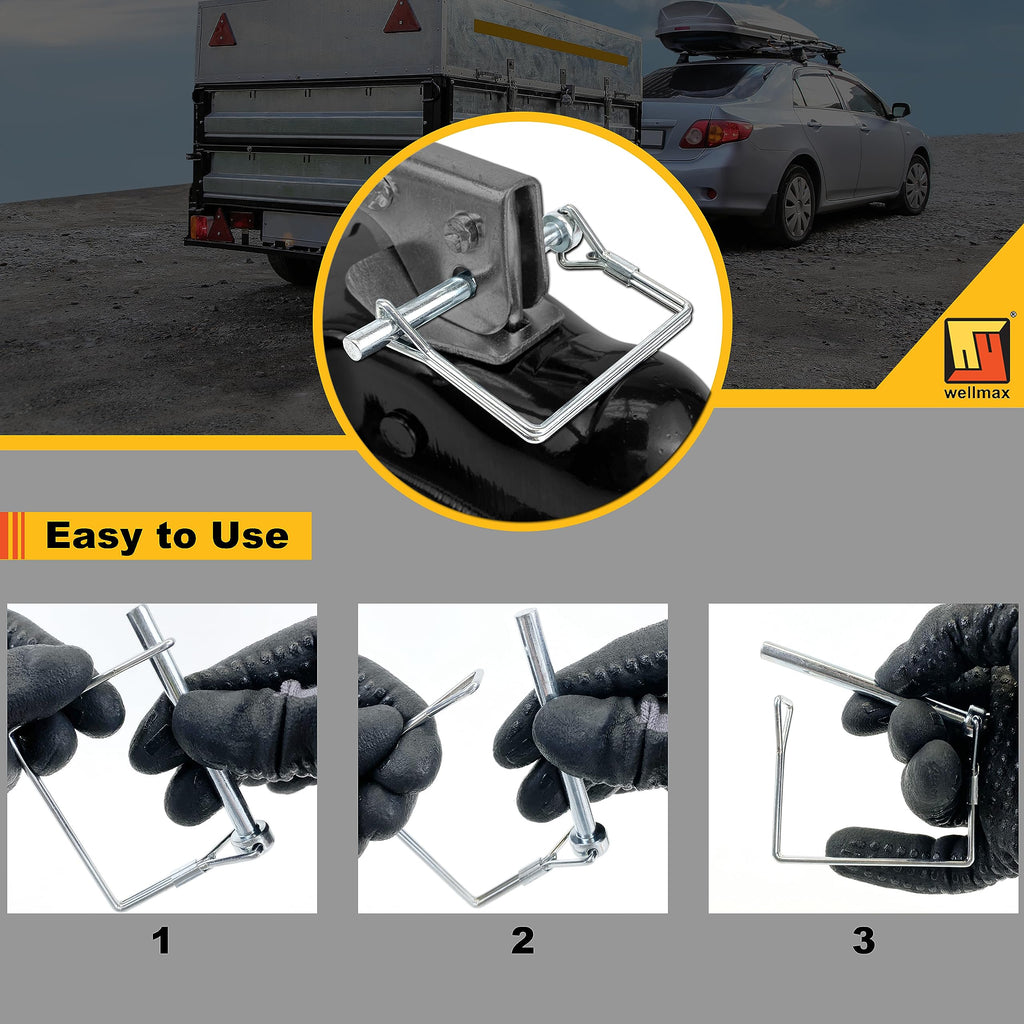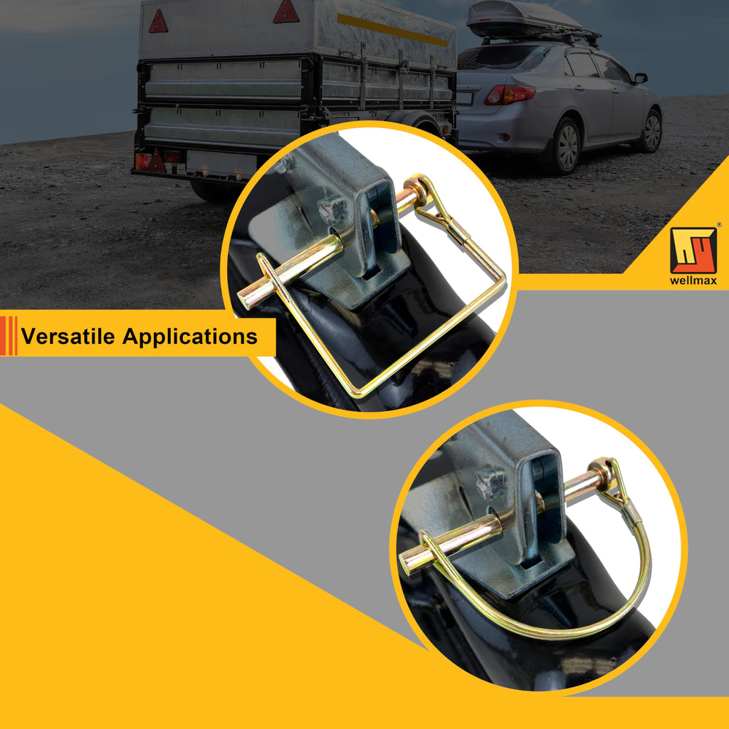 The Complete Safety Pin Solution for Farm and Fleet The Wellmax 12-Pack Hitch Pin Assortment is designed to eliminate the guesswork of finding the right size hardware. By combining two common diameters (1/4" and 5/16") and two functional shapes (Square and Arch), this kit provides the flexibility needed to maintain a variety of equipment with a single purchase. Engineered for Durability and Ease of Use Whether you are securing a heavy-duty trailer coupler or a light-duty garden cart, these pins offer industrial-grade security. The zinc-plated carbon steel resists corrosion in marine and outdoor settings, while the high-tension spring wire ensures the lock remains engaged even under heavy vibration. Kit Contents (12 Pieces Total): 4x Square Pins: 1/4" x 2-3/4" (Standard Couplers) 2x Square Pins: 5/16" x 2-1/2" (Heavy-Duty Brackets) 4x Arch Pins: 1/4" x 2-3/4" (Curved Shafts & Tubes) 2x Arch Pins: 5/16" x 2-1/2" (Large Diameter PTO/Tubes)